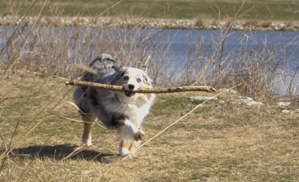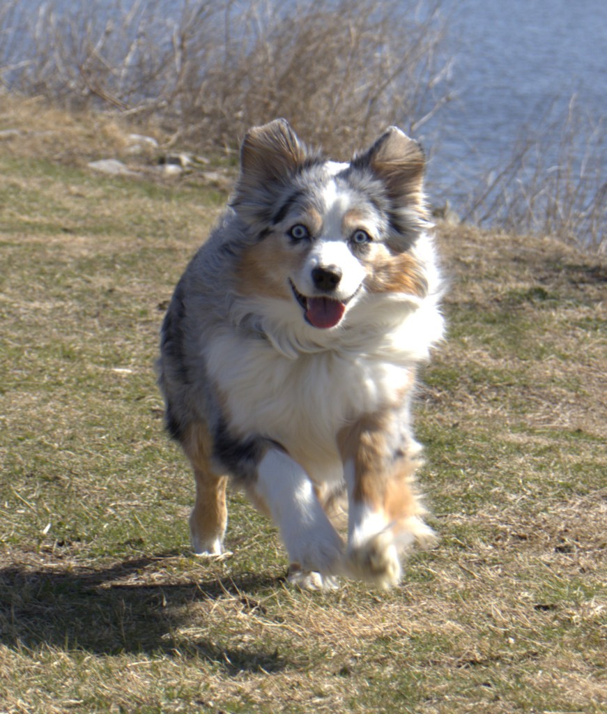 Yui our Aussie takes flight on the first thaw of spring.